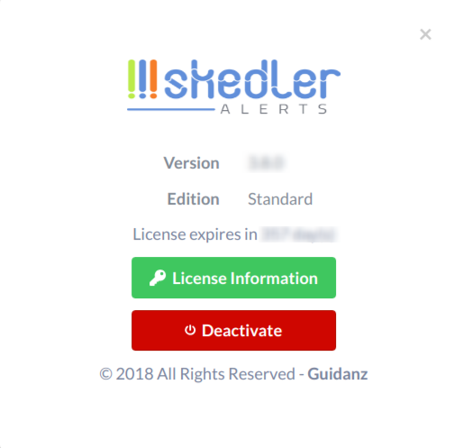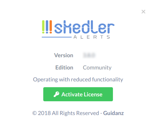 - You can verify the active license by clicking on About icon in the Skedler Alerts Homepage