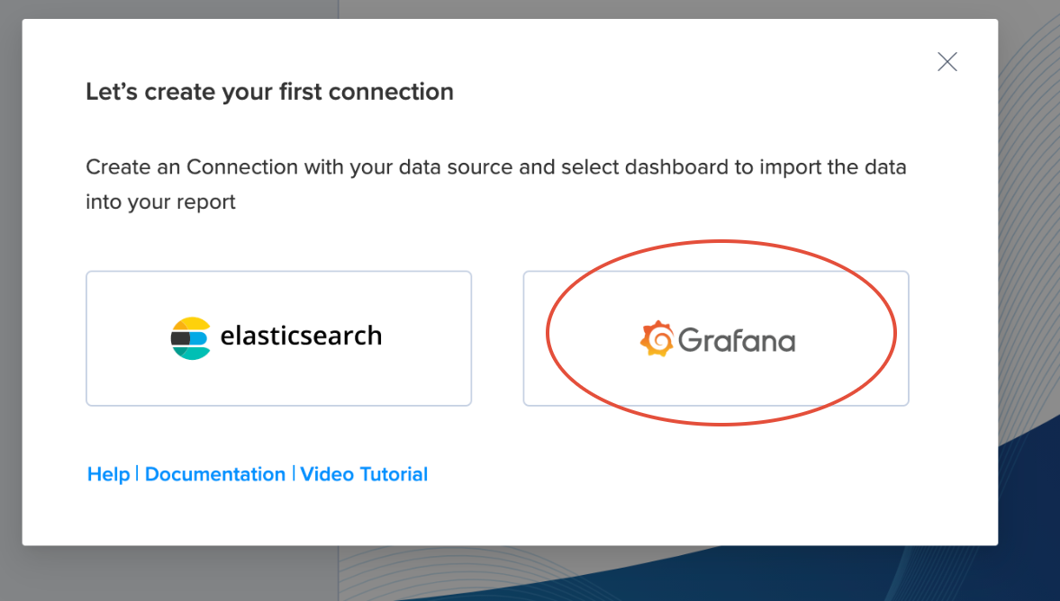 If you are creating your first report and/or if you are connecting to a new Grafana datasource, click the Connect to Data Source button.